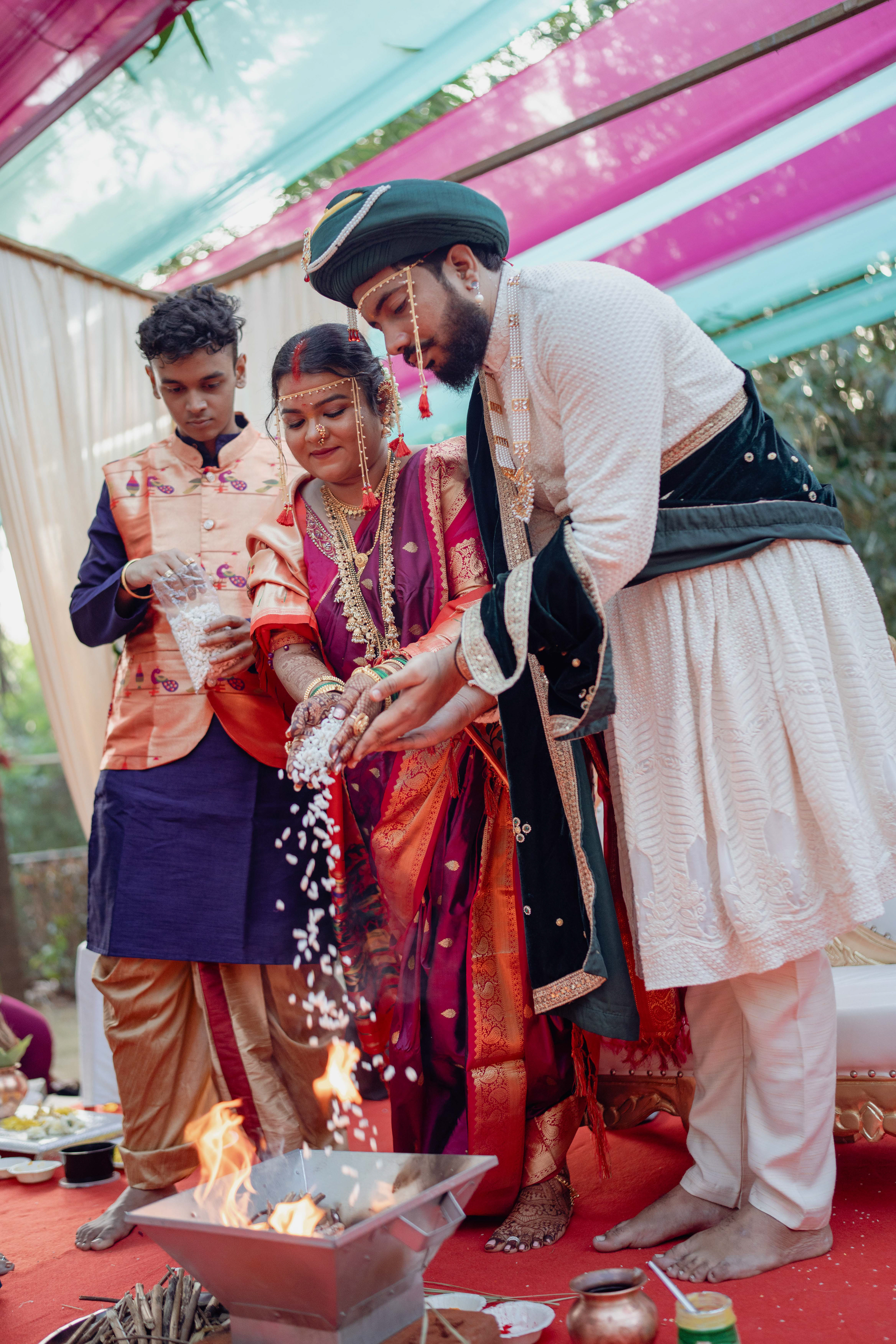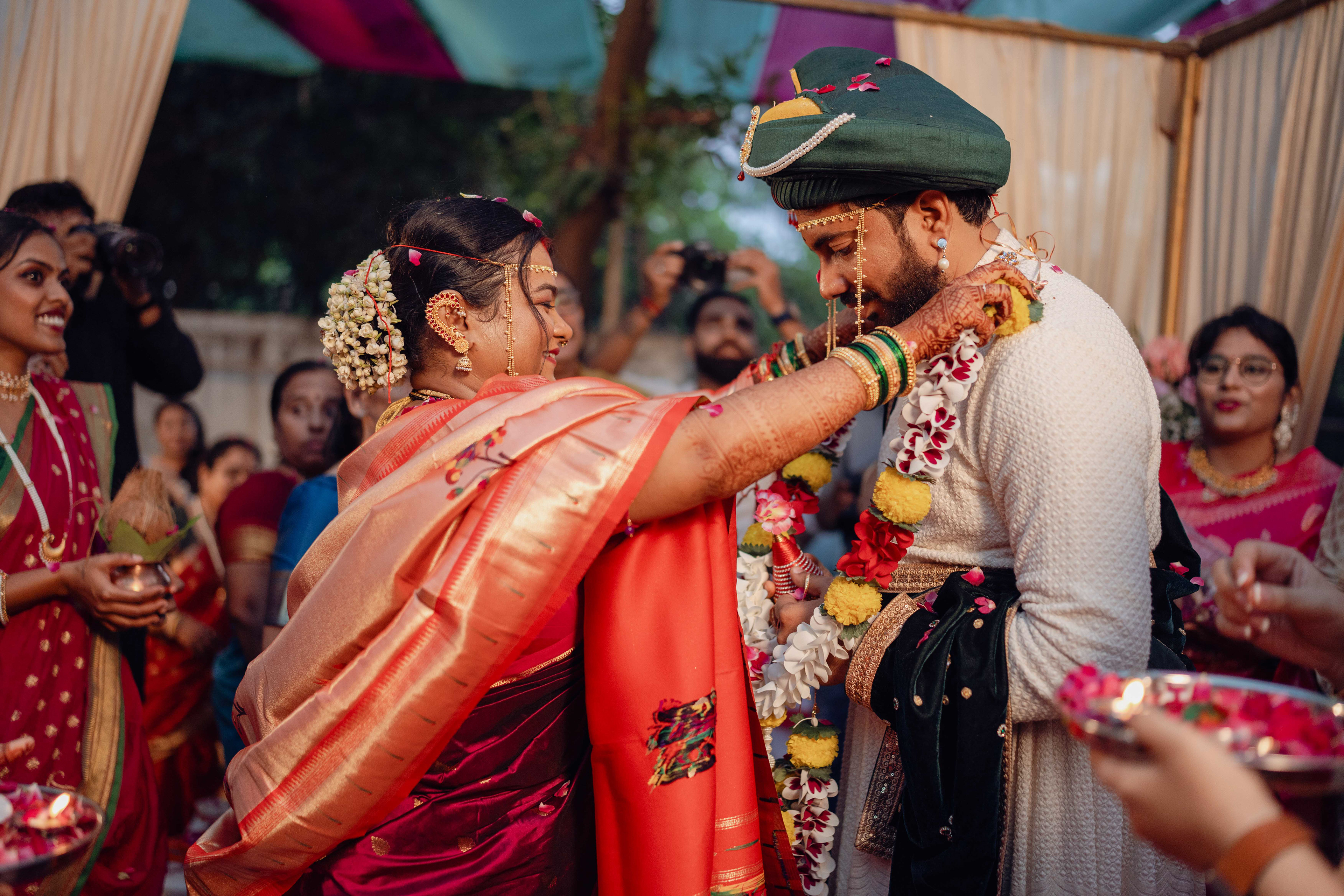 Ishita & Livian’s wedding was a celebration where two worlds came together in perfect harmony. With Ishita’s Maharashtrian roots and Livian’s Christian heritage, their union unfolded through two beautiful traditions — from the sacred rituals of a Marathi wedding to the elegance of a Christian ceremony.