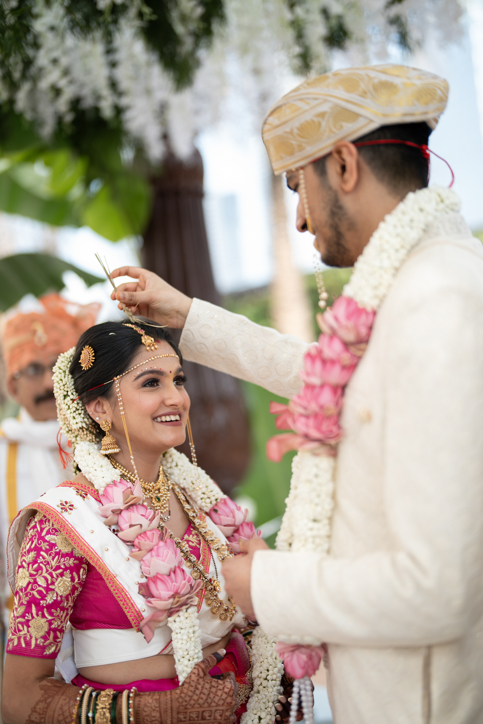 As luxury wedding photographers, we sought to preserve not only the sacred traditions but also the uninhibited joy, laughter, and togetherness that defined their celebration. From intimate rituals by the family to the spirited moments with their loved ones from abroad, this wedding was a seamless blend of authenticity and exuberance.